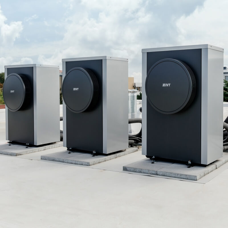 Vzduch–voda jednotka švédskeho výrobcu IVT s integrovaným zásobníkom TÚV 284 l. SCOP 5,16, COP 5,31 (7/35), COP 4,25 (2/35). IVT vyrába tepelné čerpadlá desaťročia — jednotky z 90. rokov sú stále v prevádzke. Variant AIR X S má znížený prietok vzduchu o 25 % pre tichšiu prevádzku, vhodný do hustejšej zástavby.